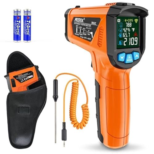 Infraröd Termometer Laser Digital Temperaturpistol med K-sond MESTEK -50 °C till 800 °C Kontaktfri Temperaturmätare Luftfuktighet Justerbar Emissivititet Färg LCD-Skärm Köks Matlagning BBQ Ugn Pizza