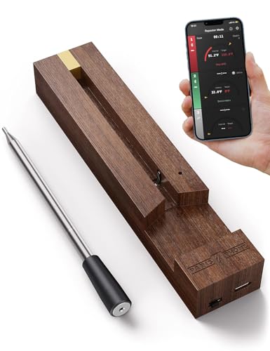 Paris-Rhône Trådlös termometer, 36 timmars batteritid, bambuladdningshölje, magnetisk, temperatursond, trådlös smart matlagning, ansluten, grill, rotissage, luftfryer, räckvidd 100 m