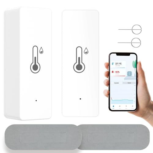 Luftfuktighet- och temperaturövervakning: Smart hygrometer och termometer med fjärrövervakning och varning, inomhustermometer med hög precision med TUYA-app, ingen hubb krävs, kompatibel med Alexa (2-pack)