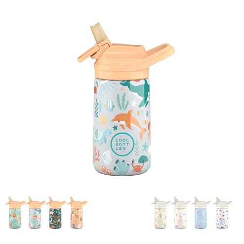 Cool Bottles Vattenflaska i rostfritt stål för barn, termos för barn, 36 timmar kalla och 18 timmar varma drycker, Underwater World 350 ml