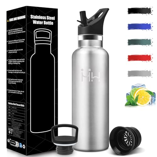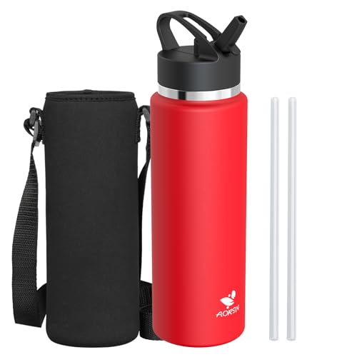 AORIN Vattenflaska i rostfritt stål, 1 000 ml läckagesäker vattenflaska med sugrör, BPA-fri drickflaska för barn, vakuumisolerad termos för sport, skola, fitness, utomhus