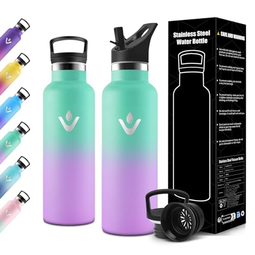 Motswedi Isolerad flaska för barn, 500 ml med sugrör, barnflaska, återanvändbar, termos, läckagesäker flaska, isolerad flaska, för skola, resor, camping, sport, gym, sjögrön och ljuslila