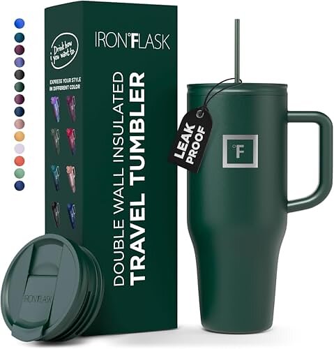 Beast isolerad mugg kaffe - 1100 ml I regnbåge I rostfritt stål I återanvändbar, isotermiska koppar I 2 sugrör och rengöringsborste I termos dubbelvägg resekaffe I varmt kaffe eller is