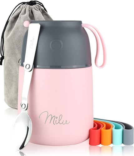 Milu® Termos 450/650/800 ml, av rostfritt stål, matbehållare/matkärl för barnmat, behållare för att hålla maten varm, termisk matlåda, müsli to go, rosa, 800 ml