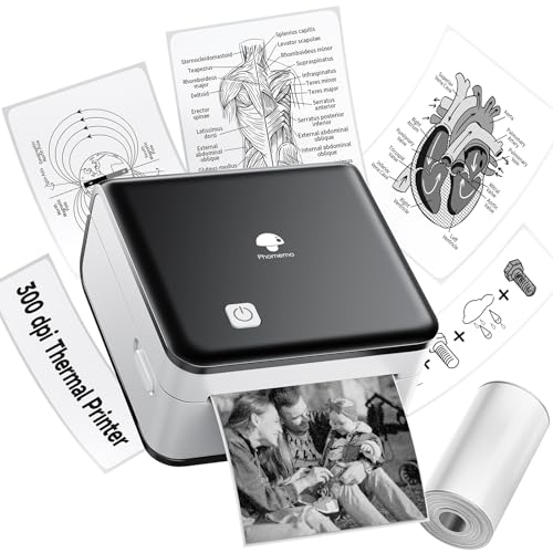 Phomemo M03 Bärbar fotoskrivare - Mobiltelefon termoskrivare, utskriftsstorlek 53 och 80 mm, kompatibel med iOS och Android, svartvit fotoskrivare för arbete, studieanteckning, organisation, planerare