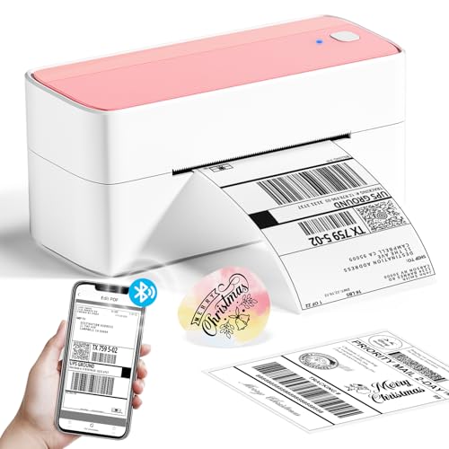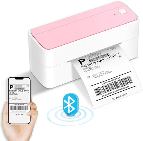 Bluetooth fraktetikettskrivare 4 x 6 – rosa trådlös termoetikettskrivare för små företag, termoskrivare för fraktetiketter, fraktetiketttillverkare, kompatibel med USPS, Amazon