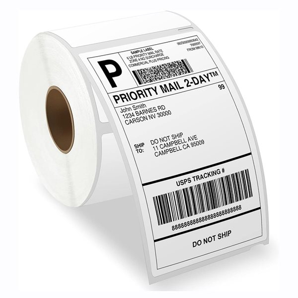 1 rulle termiska etiketter vit 103 x 199 mm 250 stycken per rulle kärna 25 mm termiska etiketter på rulle med perforering utanpåliggande permanent självhäftande etiketter för termoskrivare