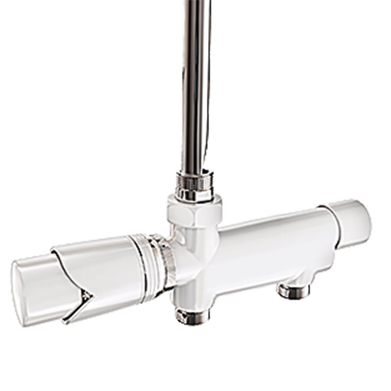 EMKE Multiblock radiator centeranslutning, kranblock radiator ventil hörn- och genomgångsform, radiatorventil med termostat för badrumsradiator värmetillbehör vit G1/2 tum, 1 st