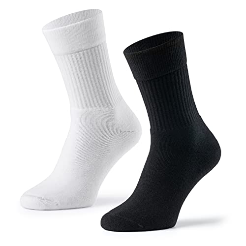 Black Crevice Merino skidstrumpor I merinostrumpor för kvinnor och män, i olika färger och storlekar, ergonomiska termostrumpor för kvinnor och män, klimatreglerande och ventilerande, 2 par, svart/vit, 43-46 EU