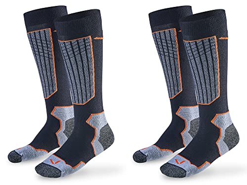 Black Crevice Merino skidstrumpor I merinostrumpor för kvinnor och män, i olika färger och storlekar, ergonomiska termostrumpor för kvinnor och män, klimatreglerande och ventilerande, 2 par, svart / orange, 43-46 EU