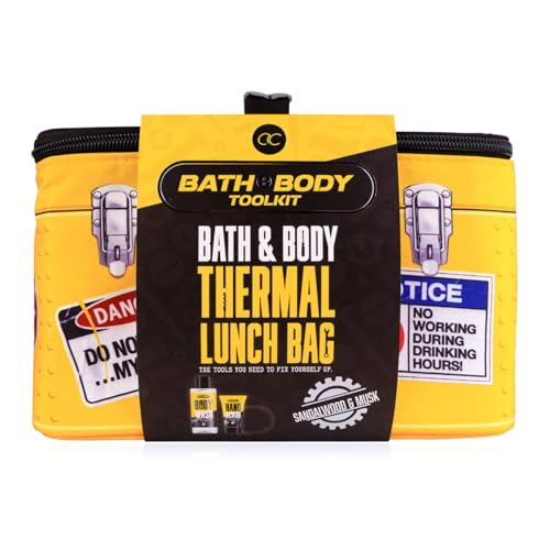 Accentra Presentset BATH BODY TOOLKIT för män i termoväska, 200 ml duschgel, 50 ml handpeeling och nätsvamp, vårdset för män, fars dag eller födelsedag