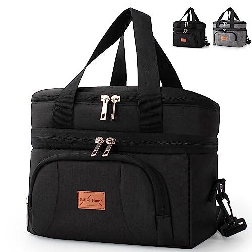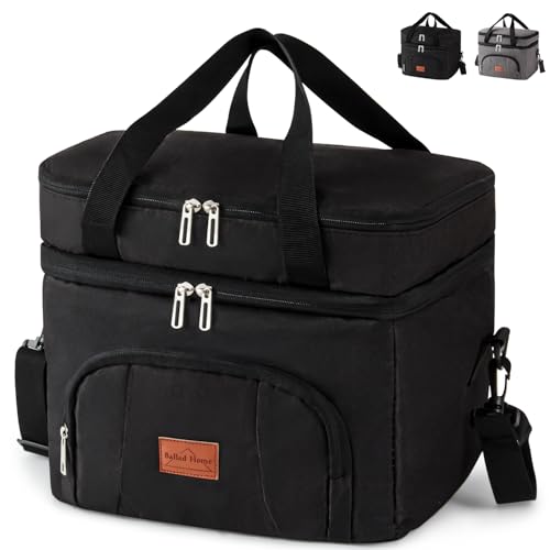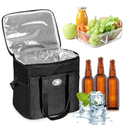 Isolerad Lunchväska för Kvinnor och Män 23L Lunch Kylväska Termoväska återanvändbar Picknickväskor Läckagesäker Isoleringsväska Med Justerbar Axelrem för Kontorsarbete Skola Picknick (Svart)