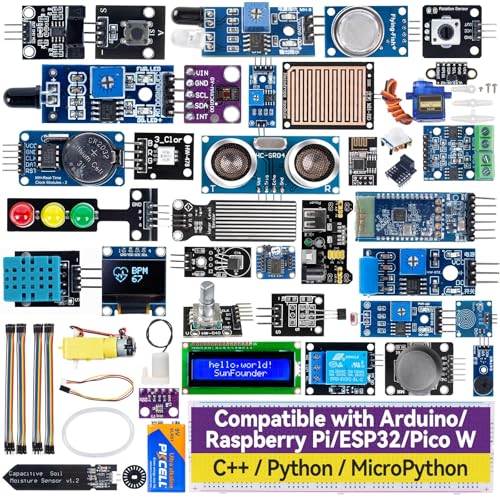 SunFounder Universal Maker Sensor Kit kompatibel med Arduino Mega/R3/R4 Minima/WiFi Nano, Raspberry Pi 5/4B/3B+/Zero 2 W/, Pico W, ESP32, C++, Python, MicroPython, nybörjare och ingenjörer