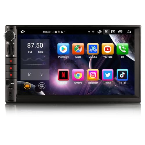 Erisin 8-kärnig 4 GB RAM 64 GB ROM Android 14 1Din universal GPS-navigeringsenhet bilradio 7 tums HD IPS pekskärm integrerad trådlös Carplay Android Auto Bluetooth 5.0 DSP OBD2 TPMS DVB-T2 DAB WiFi