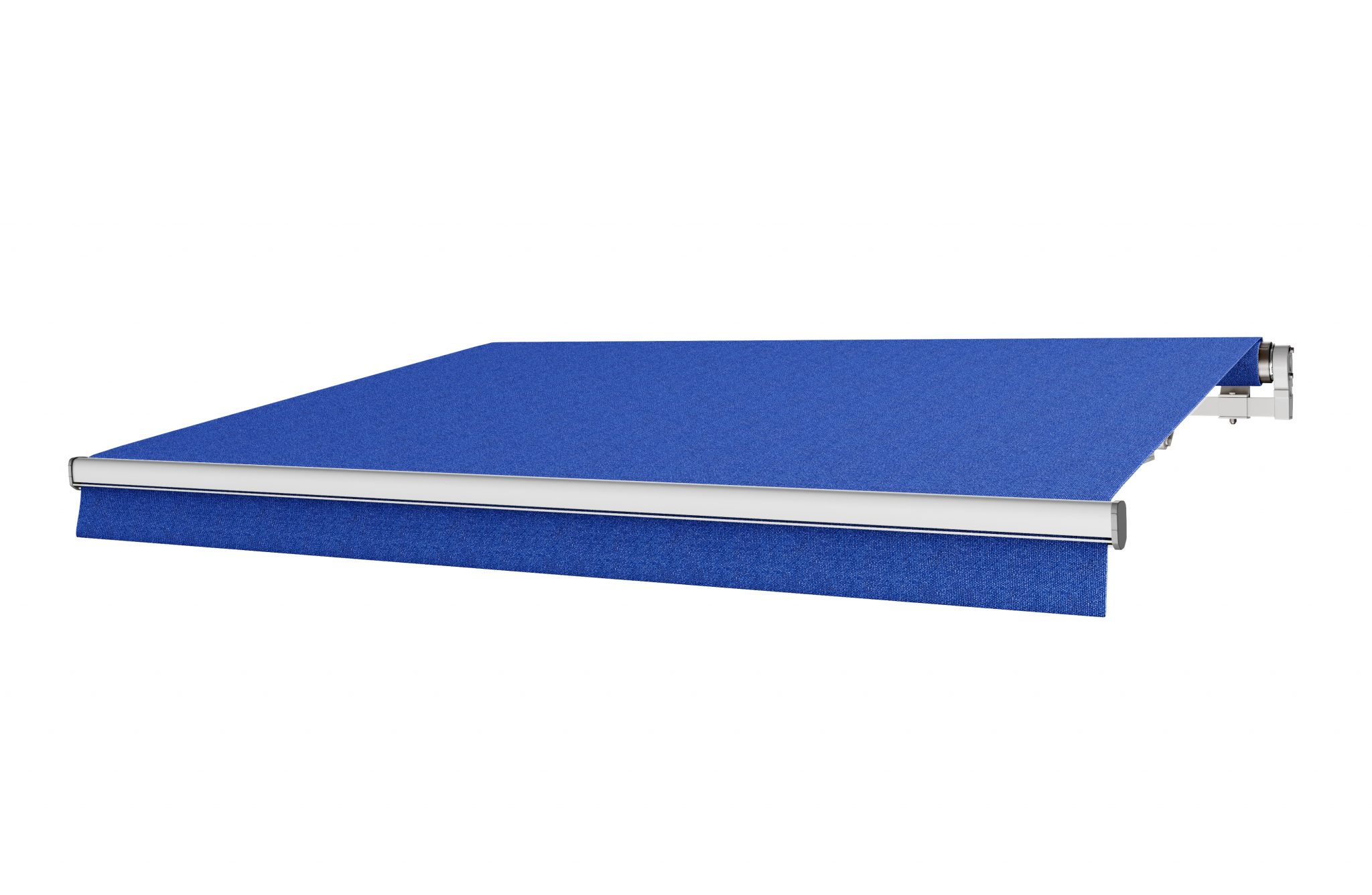 Terrassmarkis Kungligt Blå – Måttbeställd med Motor/Vev – BILLY Markiser
