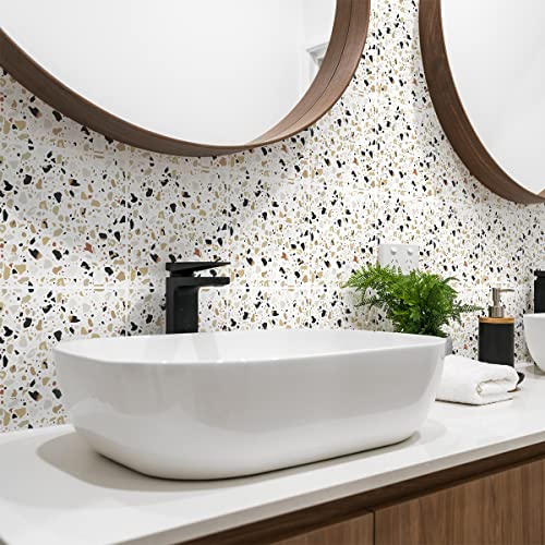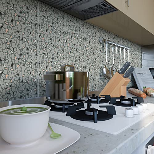 FunStick Terrazzo Peel and Stick-golvplattor 30 x 30 cm 15 st grå golvplattor, skala av och klistra fast vinylgolv, vattentät, klibbig klistra på laminat, linoleum, golvplattor för badrum, kök