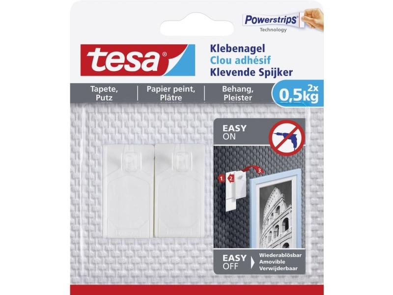 Självhäftande tavelkrok för känsliga ytor | Tesa | 1kg | 2st