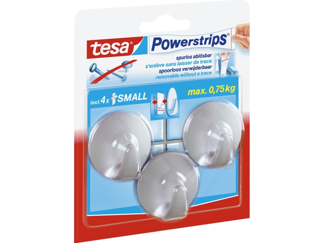 Tesa 57519-00000, Universalkrok, Krom, Plast, 1 Kg, 3 Styck, Blåsa