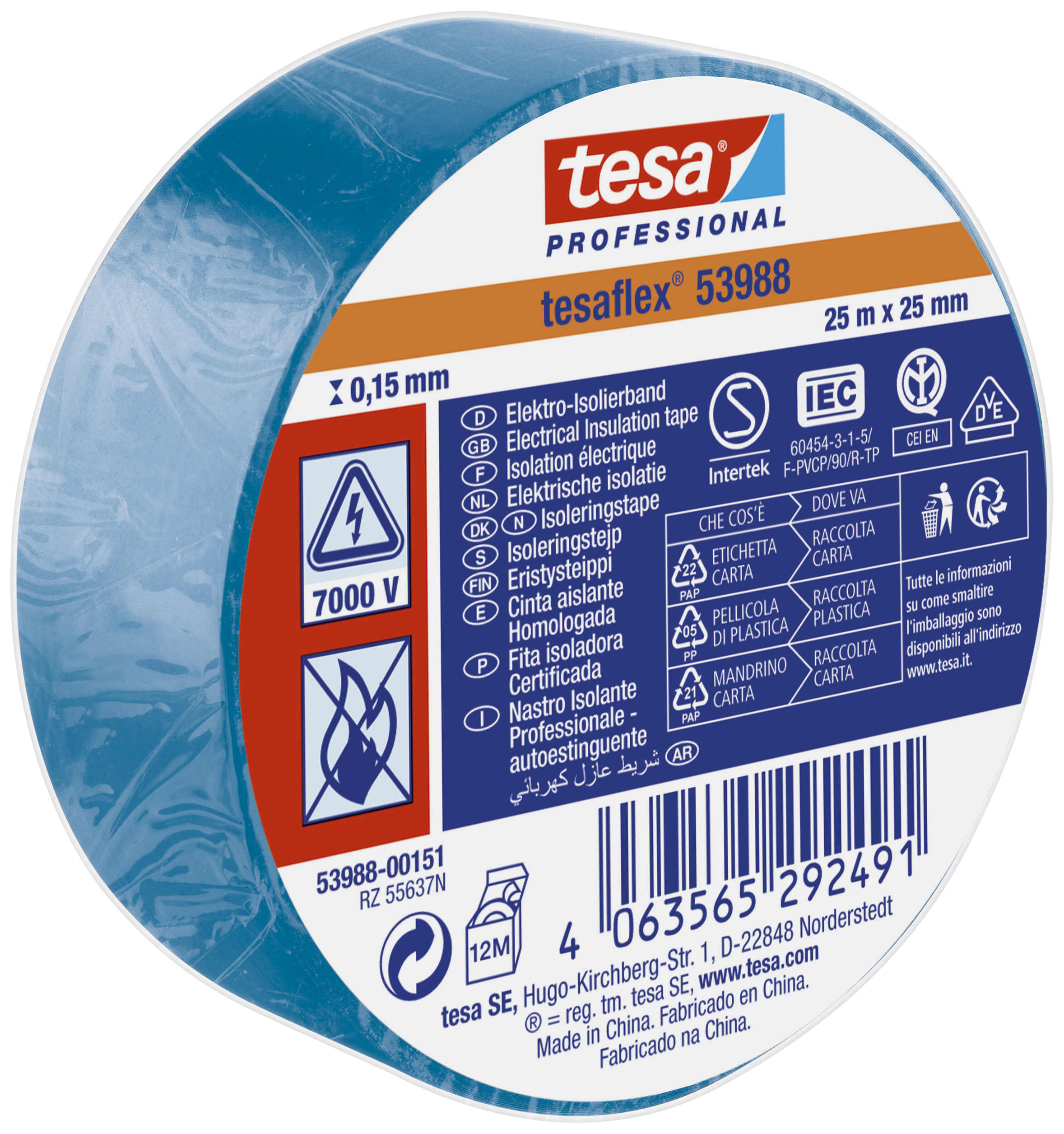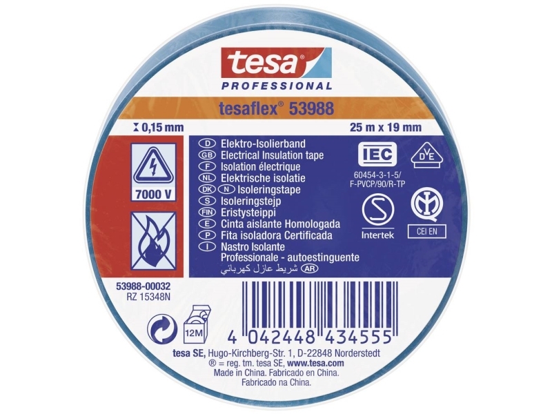 Tesa Tesaflex Iec 53988-00032-00 Isoleringsbånd Blå (L X B) 25 M X 19 Mm 1 Stk