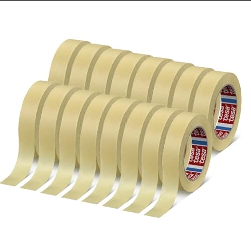 Tesa 4323 Pappersmaskeringstejp, professionell målning "gummipapper" - högkvalitativt lim (19 mm – 16 rullar)