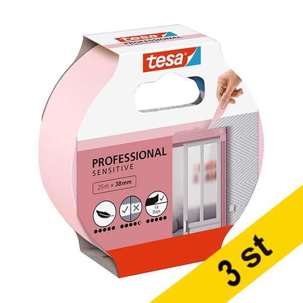 Maskeringstejp 38mm x 25m | Tesa Professional Sensitive | rosa | 3st