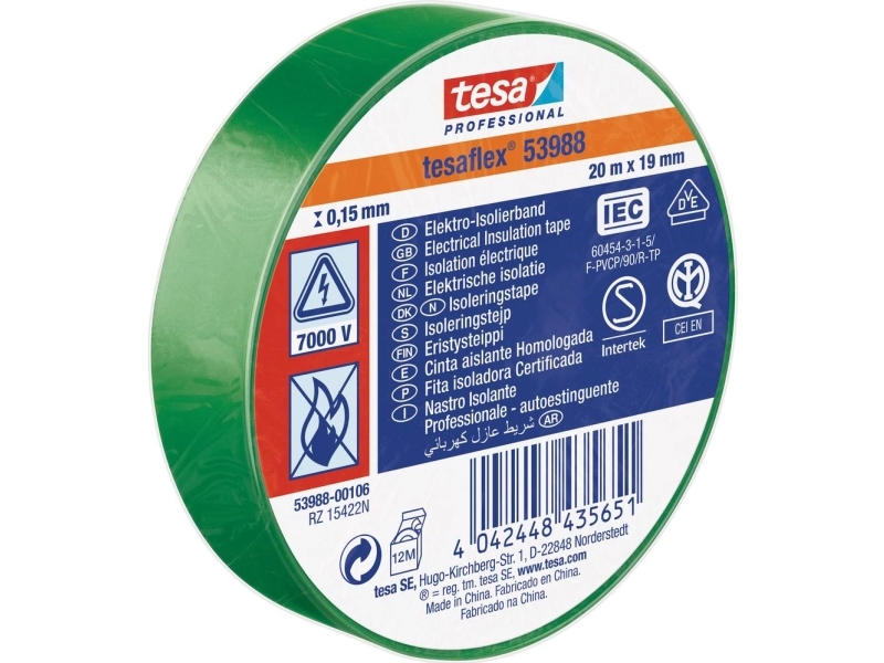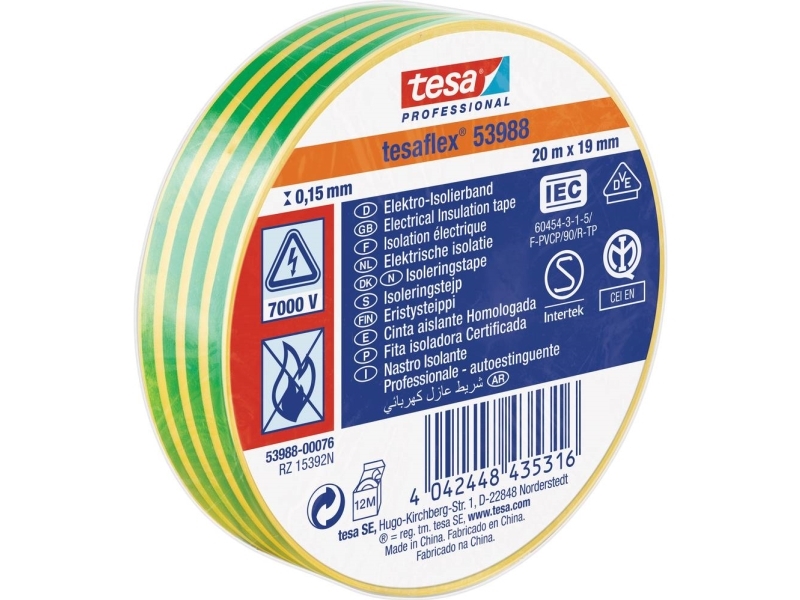 Tesa 53988-00076-00 Isoleringstejp Tesa® Professional Gul, Grön (L X B) 20 M X 19 Mm 1 St