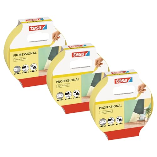 tesa Maskeringstejp Professional - Maskeringstejp av tunt Washi-papper för särskilt noggrann maskering vid målningsarbete - både inomhus och utomhus - 3x 25 m x 25 mm