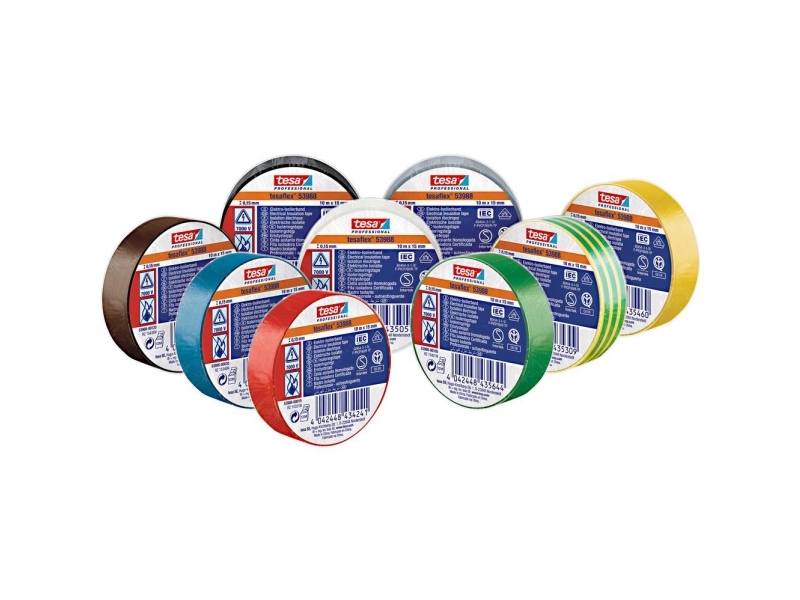 Tesa 53988-00135-00 Isoleringstejp Tesa® Professional Brun, Grön, Gul, Vit, Grå, Blå, Röd, Svart, Svart (L X B) 10 M X 15 Mm 10 St