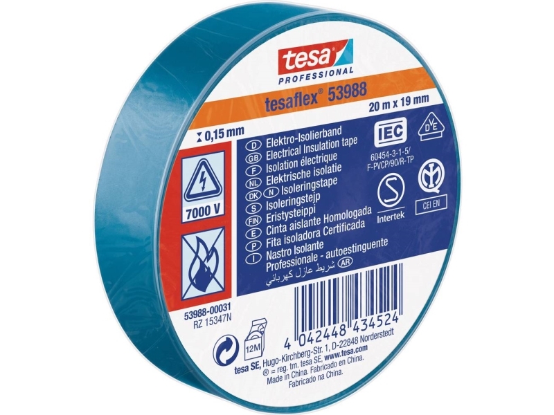Tesa 53988-00031-00 Isoleringsbånd Tesa® Professional Blå (L X B) 20 M X 19 Mm 1 Stk