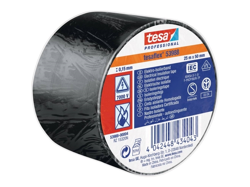 Tesa Professional, 1 Styck, Svart, Pvc, 7000 V, 25 M, 19 Mm