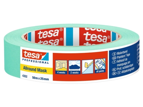 Tesa Professional 4352, Allsiding Maskeringstejp, Papper, Grön, Metall, Plast, Gummi, Trä, Universal, Universal