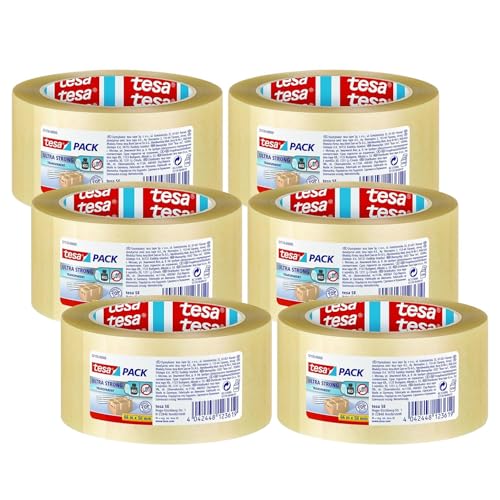 tesa Ultra Strong PVC-tejp - för säker förslutning, förpackning av tunga kartonger och buntning - hög slitstyrka - transparent - 6 rullar om 66m x 50 mm