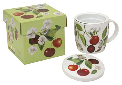 Excelsa Tazze & Co. Porslin tesil kopp med filter och 3 dimensionella lock björnbär/körsbär/vinbär, 12 x 12 x 10 cm