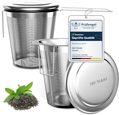 Drömtesil för löst te av 304 rostfritt stål – 2 stycken tesil för kopp, tefilter rostfritt stål med lock och vikbara handtag – finmaskig och diskmaskinssäker