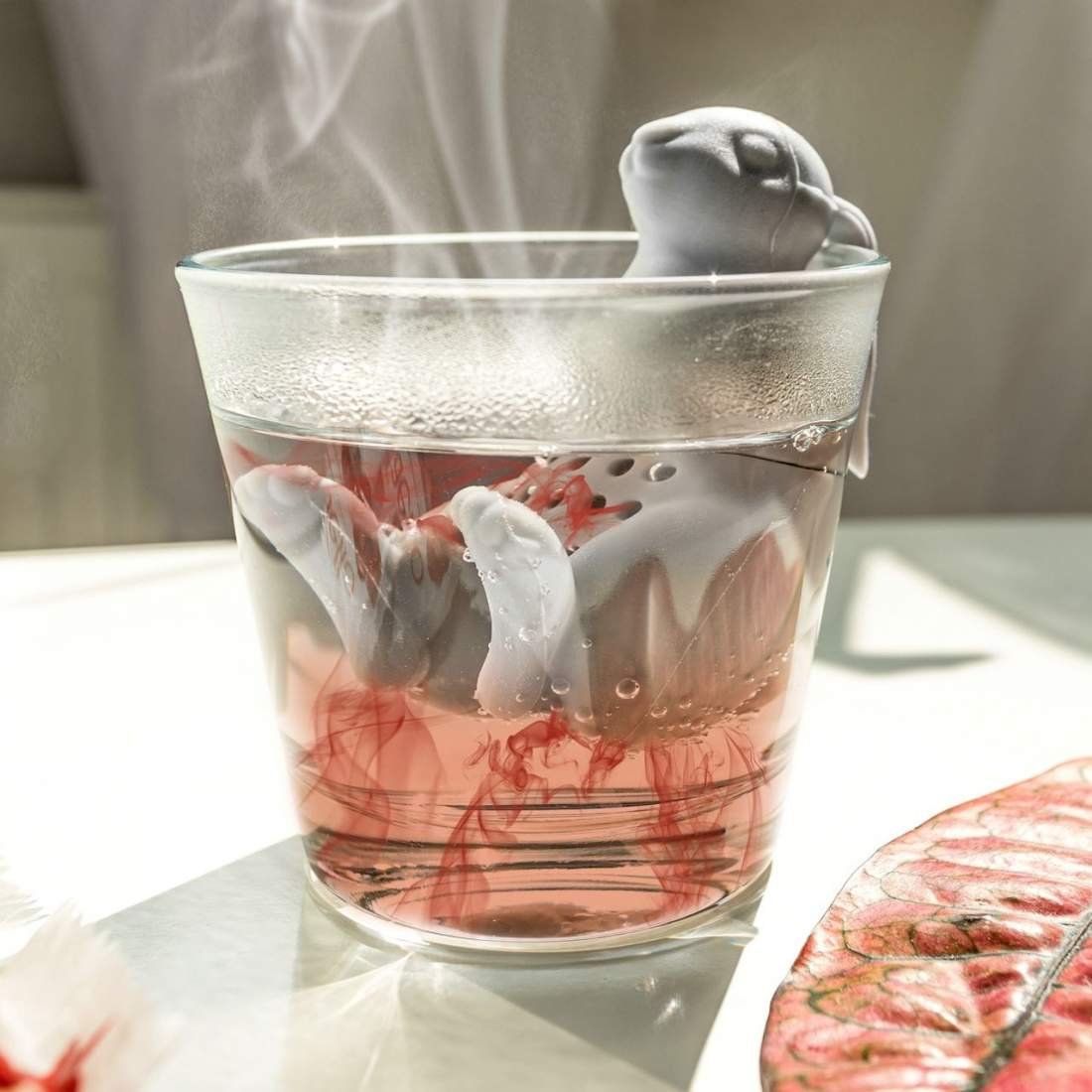 Rayong silikon tesil (katt, grå), set med 2 – kul för de flesta tekannor och tekoppar, säker, diskmaskinssäker, mångsidig