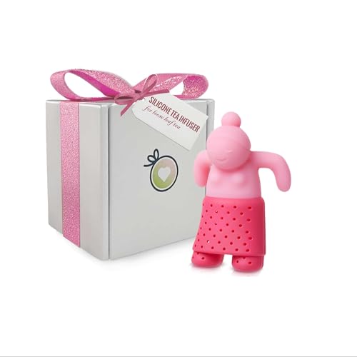 Tesil i silikon för lösblads te och lösa teblad, sött tefilter för att brygga örtte i en kopp eller mugg, Miss CuTEA är en perfekta present till alla kvinnliga teälskare, rosa