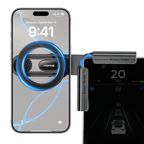 IYOFINE Tesla telefonfäste för tesla modell y-tillbehör 2025, inget lim krävs, för MagSafe magnetisk bilinstrumenttelefonhållare för Tesla Model 3/Y/S/X/Cybertruck-tillbehör (för modell 3/Y/S/X