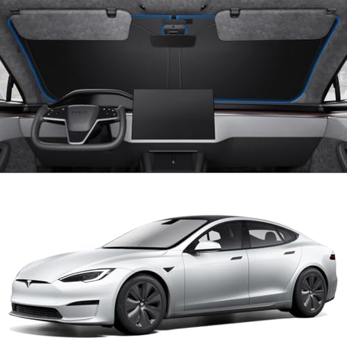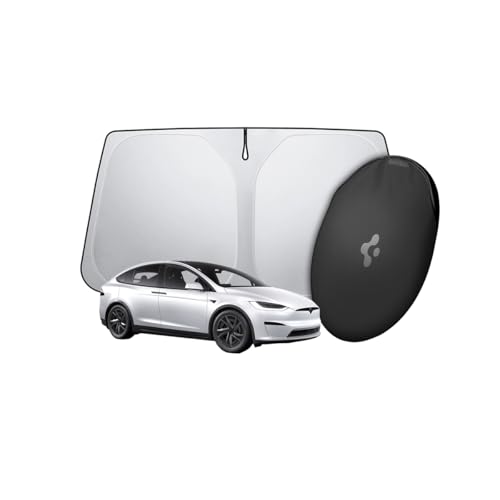 Spigen Tesla Model S Vindruta Solskydd fram med fodral, [Trippelbeläggning] Anti-UV-Solskydd, Tesla Tillbehör, Kompatibel med Tesla Model S