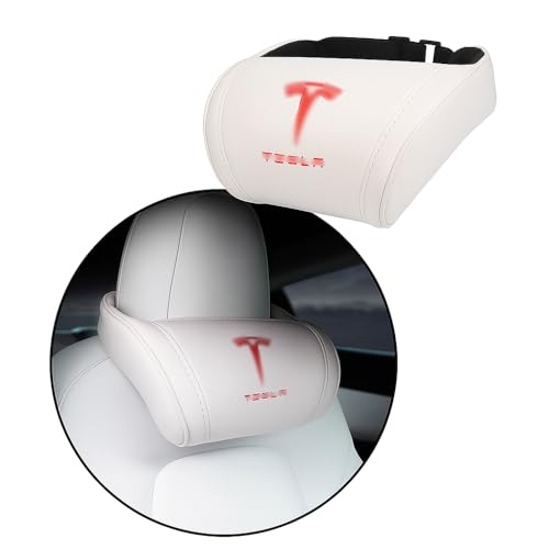 TESBEAUTY Uppgraderad nackstödskudde för bil 2-pack äkta nappa-läder bil nackkudde Tesla Model Y Model 3 Model X Model S Universal Fit nackstöd kudde vit