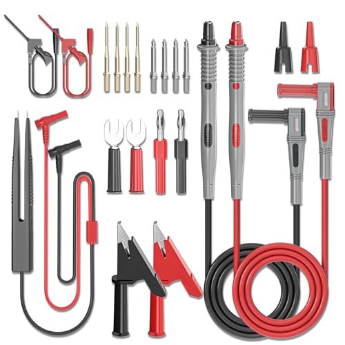 ALLmeter 27PCS testspetsar för multimeter testkabelsatser krokodilklämmor med kabel mätkabel testkablar SMD pincett testtips testkrok bananpluggkabel för hushållsapparater industri