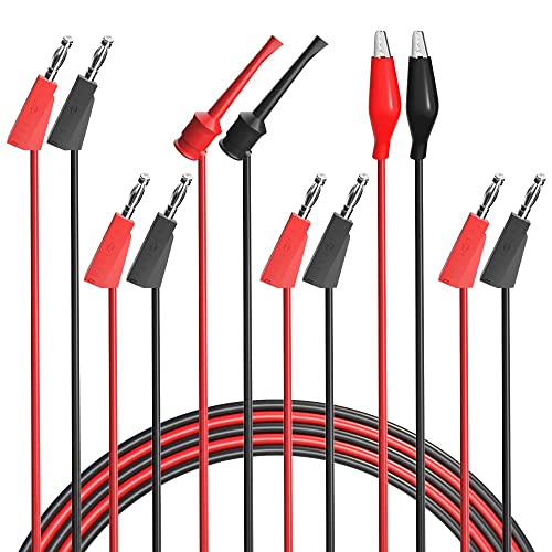 Greluma Multimeter Testkablar Set, Banan Plugg Kablar Kit-Staplingsbar Banan till Alligator Clips, Banan till Banan Pluggar, Banan till Mini Grabber Test Krok Clips, Koppar elektrisk tråd