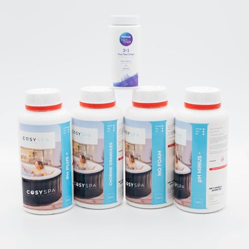 CosySpa Spabad Kemikalier – Startpaket & Rengöringskit | Testremsor för Spabad, Klorintabletter, Kemikalieflottör, Rengöringsmedel och mer (Kemiskt Startkit)