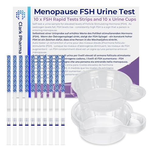 10-pack Klimakterietestkit | 10 testremsor och 10 urinprovsbehållare | Kvinnlig Follikelstimulerande Hormon-detektering | Självtest för tidigt klimakterium och perimenopaus | Fertilitetstest
