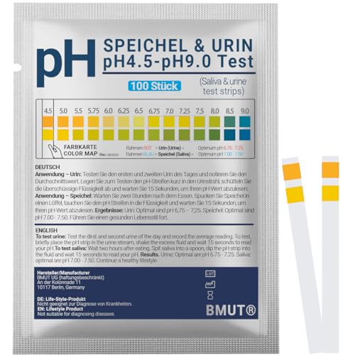 100 x pH testremsor för urin och saliv | ph värde test | syrabasbalans (översyrning)