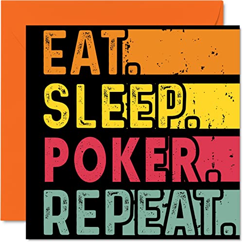 Rolig födelsedagskort för henne eller honom, äta, sova, poker, upprepa, gratulationskort för kortspel, presenter till Texas Holdem-älskare, 145 gratulationskort
