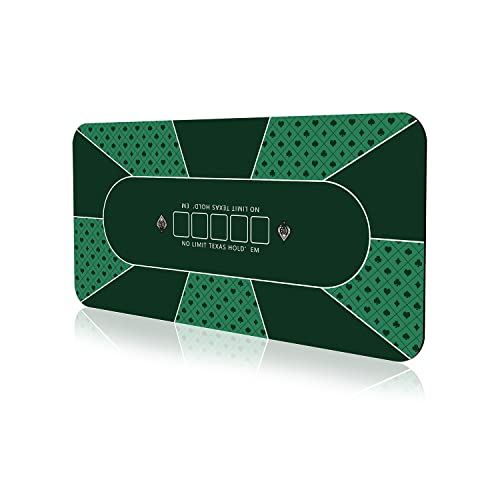 Pokermatta 180×90cm, 10 spelare Texas Hold'em Poker Rubber Mat Poker Topper för bord, fällbar bärbar pokerbordslayout med bärväska för pokerspel, blackjack, kasino (Rektangel-Grön)