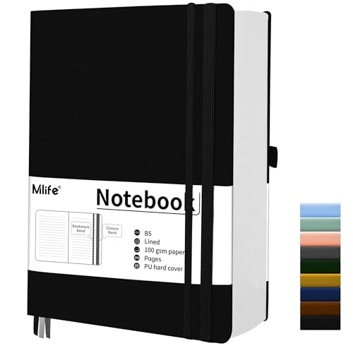 Mlife B5 anteckningsböcker med linjerad text,tjock anteckningsbok med 300 sidor,100Gsm premiumpapper,inbunden anteckningsbok för män och kvinnor (Svart)