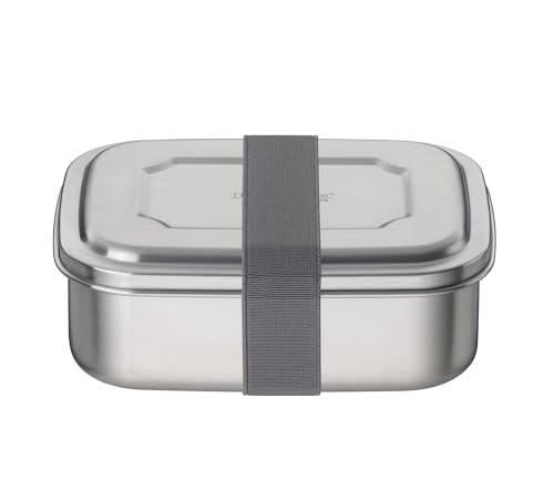 TC Sandwich Box 1,00 l, stengrå, rostfritt stål omålat med textilband brödlåda av rostfritt stål, pausbröd för universitet, skola, kontor, diskmaskinssäker, TERMOCAFE av TERMOS