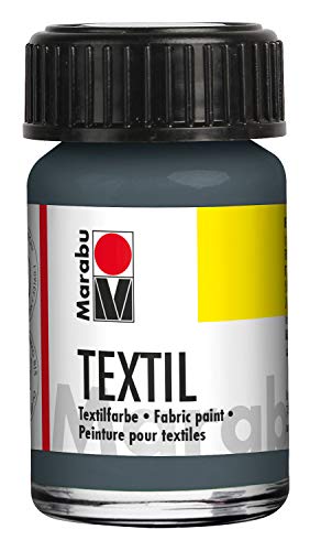 Marabu 17160039078 – textilfärg för ljusa tyger, grå 15 ml, vattenbaserad tryckfärg, tvättbar upp till 60 °C, fixering genom strykning eller ugn