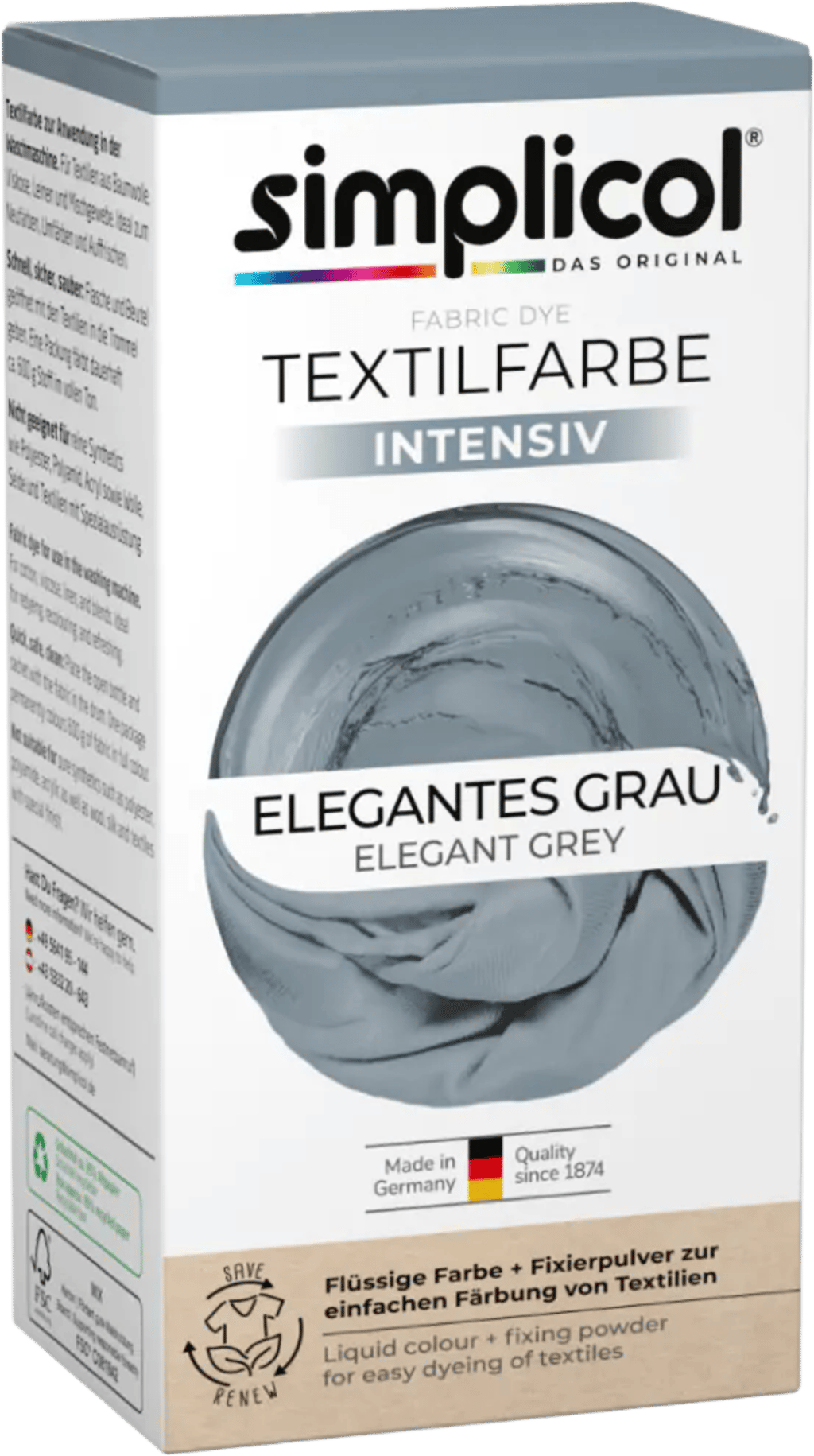 simplicol Textilfärg intensiv (18 färger), elegant grå 1817: Enkel färgning i tvättmaskinen, allt-i-1 komplett förpackning